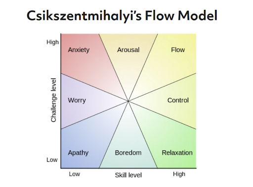 - Understand the relationship between skill level and degree of challenge, and anxiety and boredom, relative to flow.